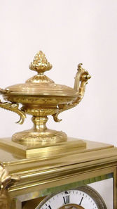 FRENCH 19TH CENTURY BRASS FOUR GLASS ANTIQUE MANTEL CLOCK BY SAMUEL MARTI
